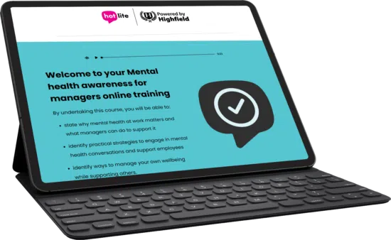 This HOT Lite online training is a micro-teach that builds awareness of mental health in the workplace. Learners will explore how managers can recognise signs of distress, start supportive conversations, and promote wellbeing. Quick, accessible and compatible across devices, it’s ideal for individuals and teams looking to strengthen mental health awareness and support practices.View product This product has multiple variants. The options may be chosen on the product page -